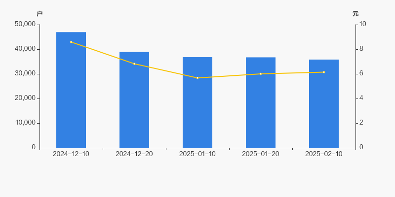 截至2025年2月10日,公司最新流通股本为3.23亿股。户均持有流通股数量由上期的8808股上升至9031股,户均流通市值5.55万元。