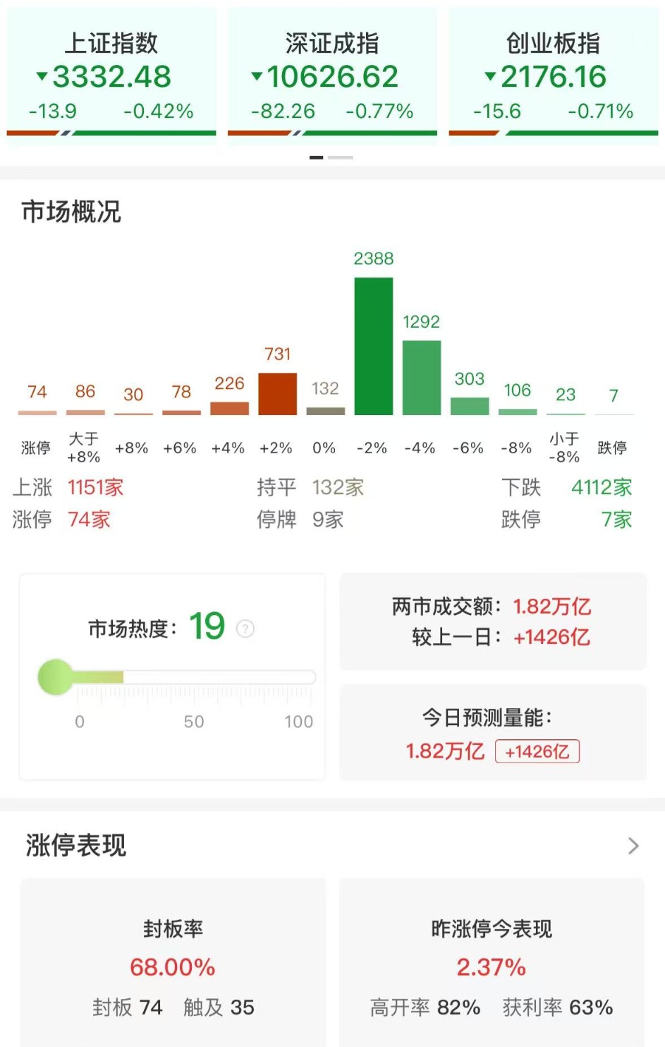 收评:沪指放量冲高回落 全市场超4100只个股下跌
