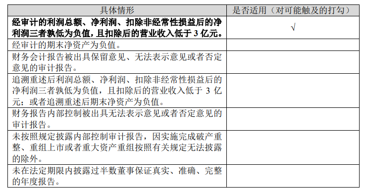 截至本公告披露日,公司可能触及的财务类终止上市情形如下表所示: