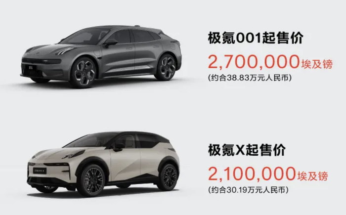 据极氪消息,2月11日,极氪埃及上市发布会于开罗举行,正式发售极氪001和极氪X,起售价分别为270万埃及镑(约合人民币38.83万元)、210万埃及镑(约合人民币30.19万元)。