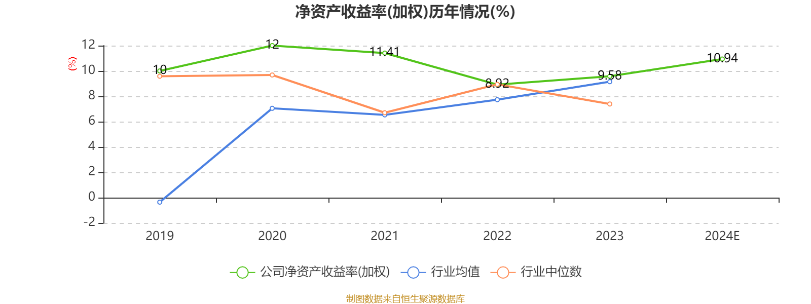 数据显示,2024年公司加权平均净资产收益率为10.94%,较上年同期上升1.36个百分点。