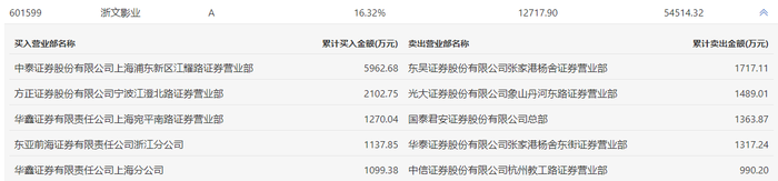 浙文影业今日涨停,龙虎榜数据显示,上榜营业部席位全天成交1.85亿元,占当日总成交金额比例为33.84%。其中,买入金额为1.16亿元,卖出金额为6877.44万元,合计净买入4695.27万元。