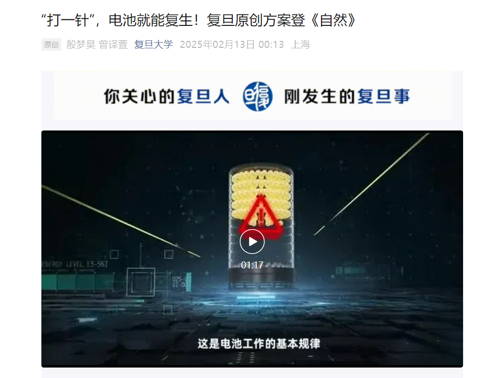 复旦大学介绍,使用这一技术,电池在充放电上万次后仍展现出接近出厂时的健康状态(96%容量),循环寿命从目前的500—2000圈提升到12000—60000圈,在国际上尚属首例。