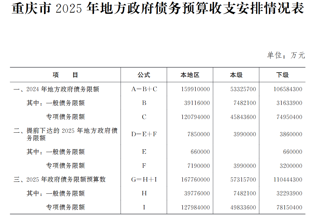 重庆市预算报告称,总的来看,全市政府债券资金依法用于项目建设,偿债资金来源落实、按时足额还本付息,风险总体可控。2024年底,重庆政府债务余额为14425亿元,在核定限额(15991亿元)之内。