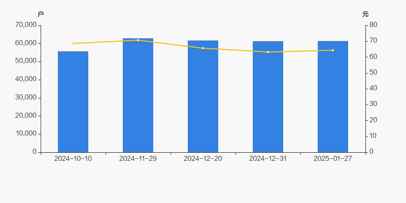 截至2025年1月27日,公司最新总股本为3.48亿股,其中流通股本为2.87亿股。户均持有流通股数量为4678股,较上期略有下降;户均流通市值30.09万元。