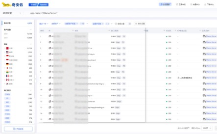 奇安信资产测绘鹰图平台显示大概有8971个IP运行了Ollama