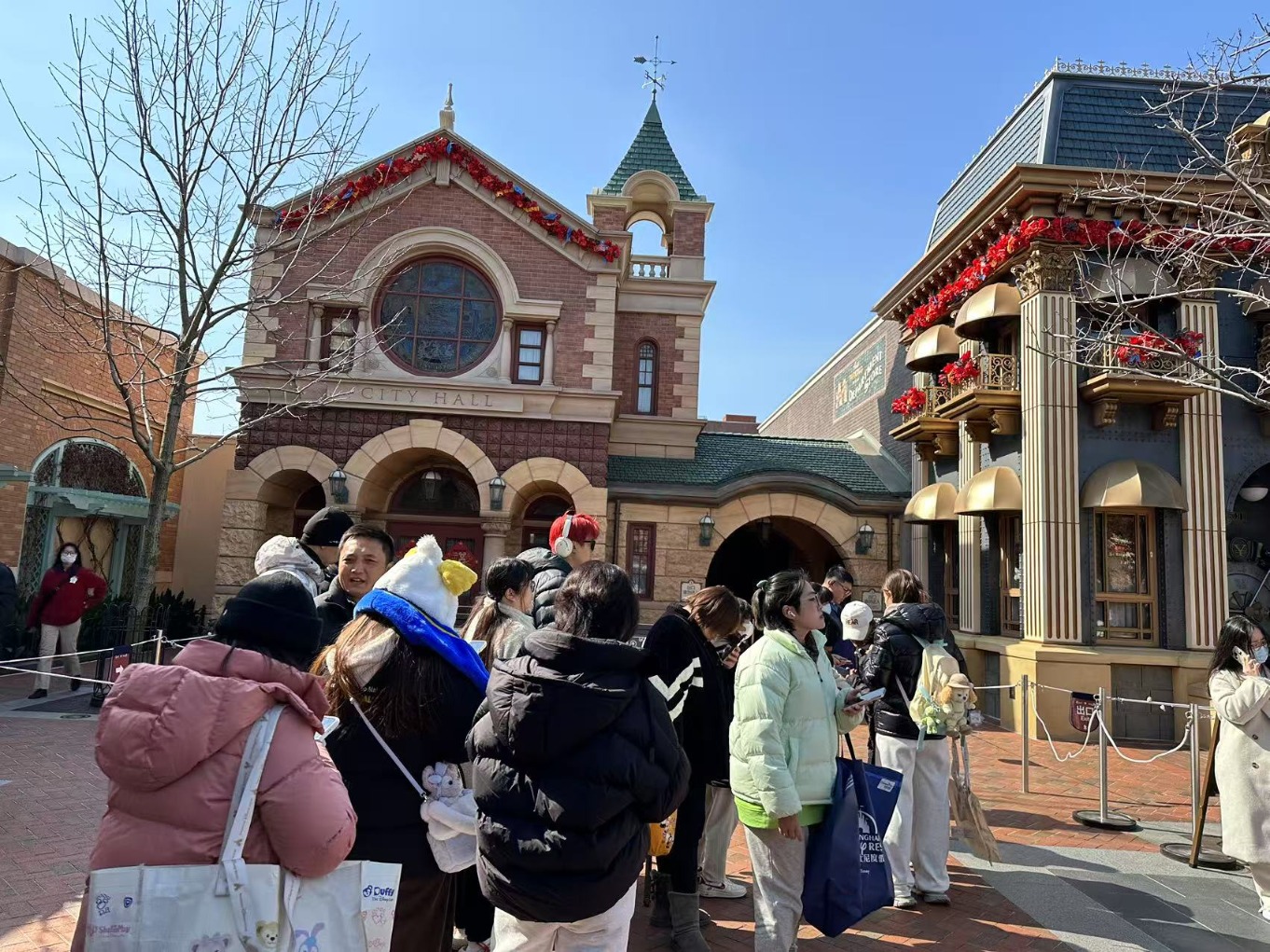 2月13日,已抽中签的游客正在上海迪士尼乐园内排队购买“七宝花束” 。新京报贝壳财经记者俞金旻摄