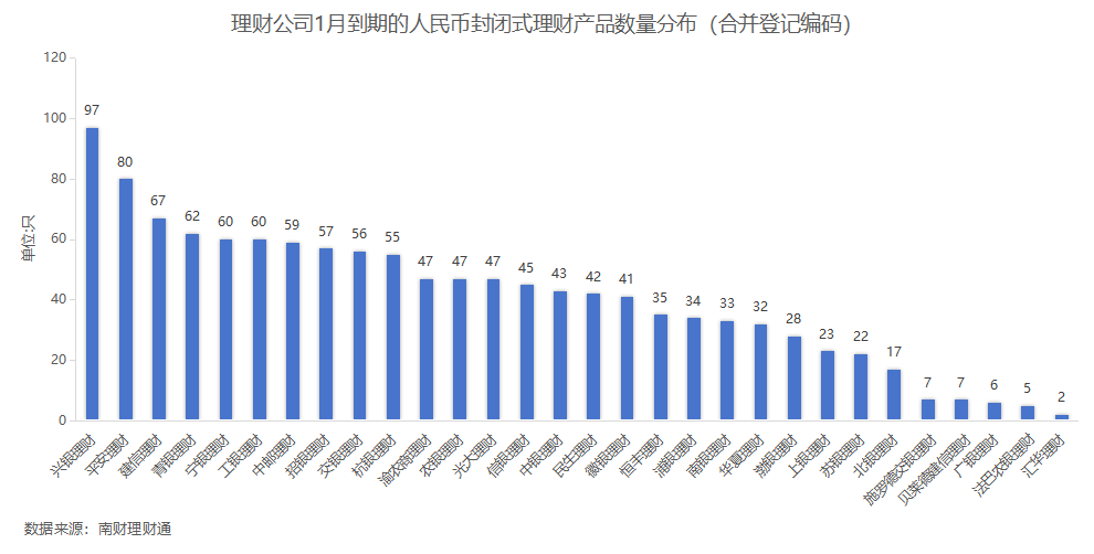 兴银理财、平安理财、建信理财到期产品数量位居前三