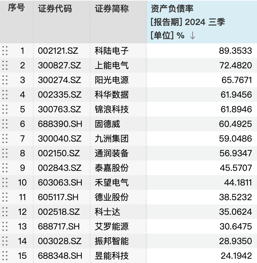 部分逆变器企业截至2024年三季度末资产负债率图源/Wind