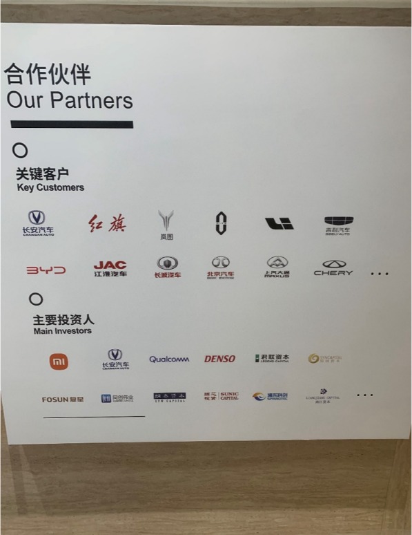 而在公司一楼大堂的企业展板上,纵目科技也在显眼的位置上,列出了公司的主要投资人和关键客户。