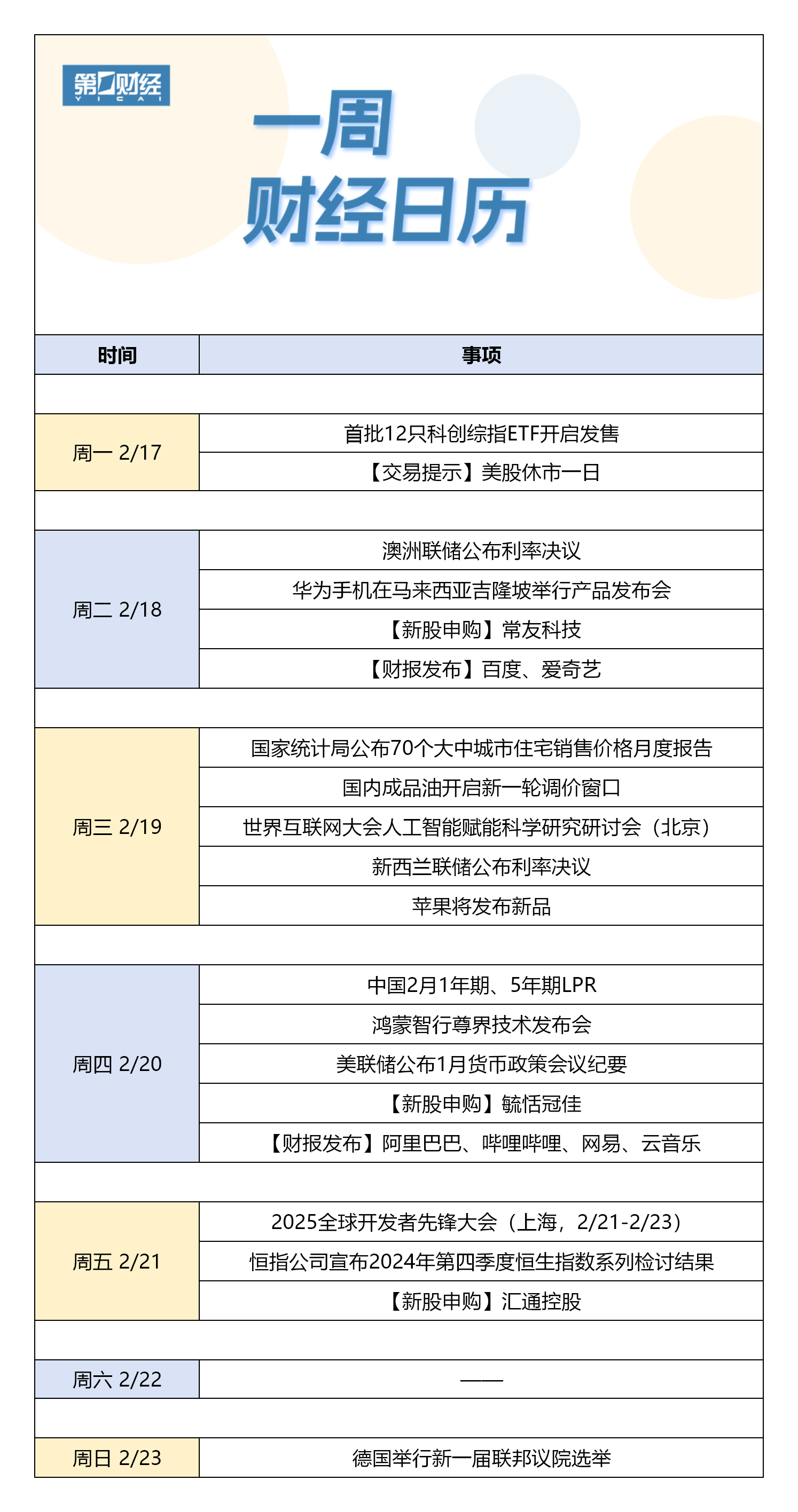 【下周财经日历】2月17日-2月23日: