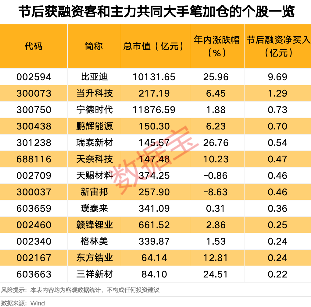 证券时报网讯,据证券时报·数据宝统计,固态电池概念股年内股价平均上涨5.06%,瑞泰新材、冠盛股份、比亚迪、三祥新材的股价涨幅居前,年内均上涨超20%。目前超半数个股已发布2024年业绩预估或快报或年报,综合业绩预估下限和年报、快报数据来看,电池领域业绩亏损的上市公司数量增多,天齐锂业、赣锋锂业、南都电源、恩捷股份等股业绩均预计首亏。节后以来,超六成概念股获得融资客加仓,比亚迪、当升科技、宁德时代、鹏辉能源、瑞泰新材的融资净买入额居前,均超5000万元,其中比亚迪、当升科技节后分别获得融资净买入9.69亿元和1.29亿元。