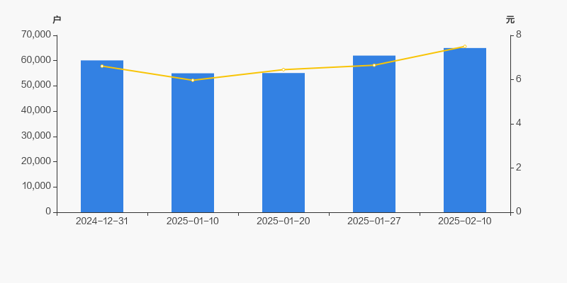 截至2025年2月10日,公司最新总股本为5.61亿股,其中流通股本为4.49亿股。户均持有流通股数量由上期的7249股下降至6915股,户均流通市值5.19万元。