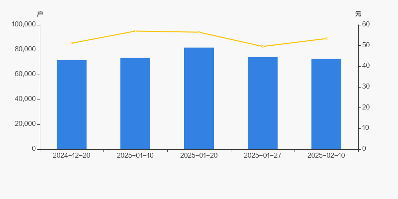 截至2025年2月10日,公司最新总股本为3.28亿股,其中流通股本为1.8亿股。户均持有流通股数量由上期的2432股上升至2479股,户均流通市值13.24万元。