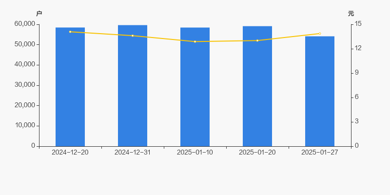 2024年12月20日至今,公司股东户数有所下降,区间跌幅为7.41%。2024年12月20日至2025年1月27日区间股价下降1.56%。