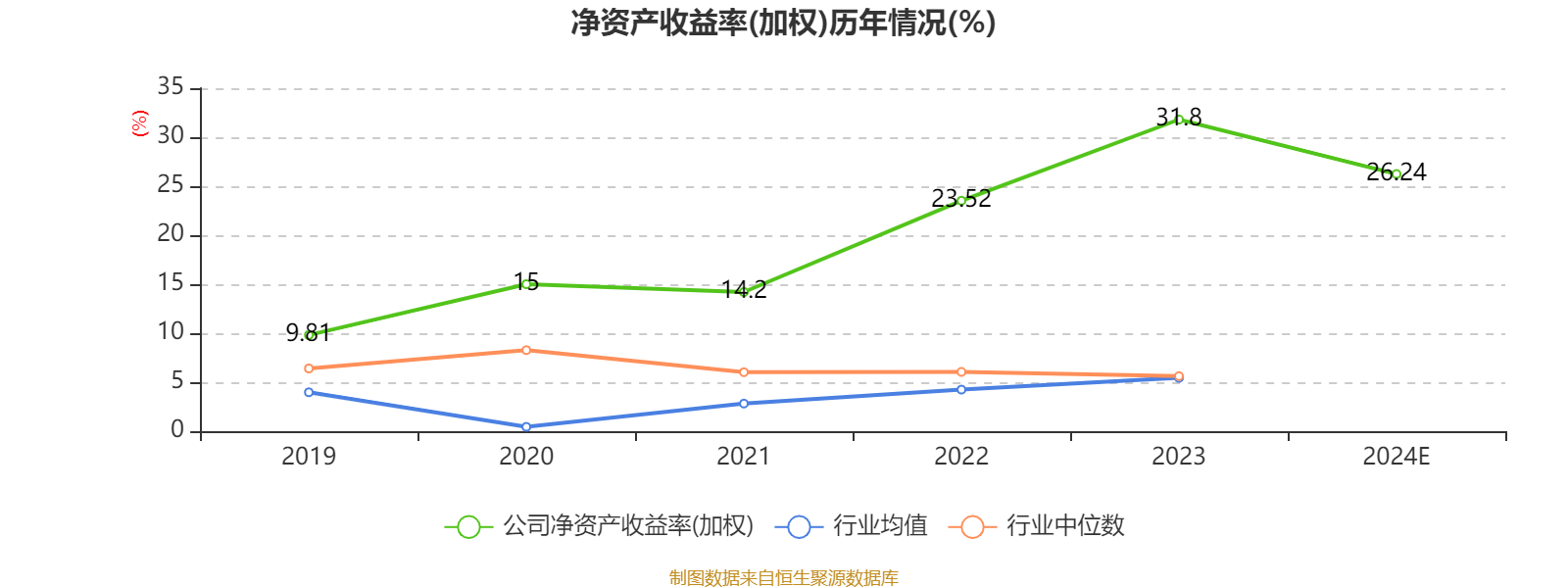 数据显示,2024年公司加权平均净资产收益率为26.24%,较上年同期下降5.56个百分点。