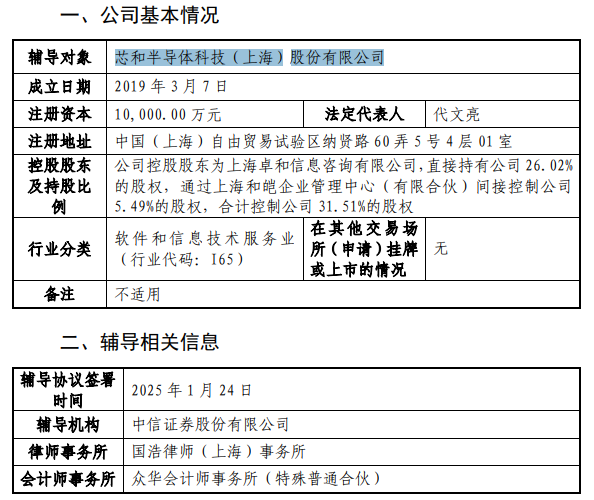 近日,芯和半导体科技(上海)股份有限公司(下称“芯和股份”)向上海证监局提交上市辅导备案报告,此前的1月14日公司与中信证券(600030)签署了上市辅导备案协议。