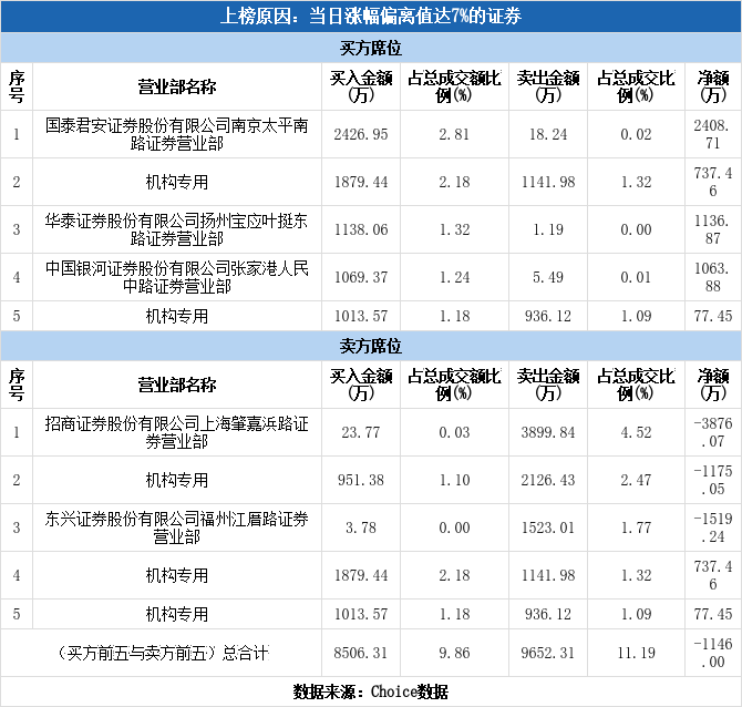 龙虎榜数据显示,今日共5个机构席位出现在龙虎榜单上,分别位列买二、买五、卖二、卖四、卖五,合计净卖出360.15万元,占龙虎榜净卖额的31.43%。