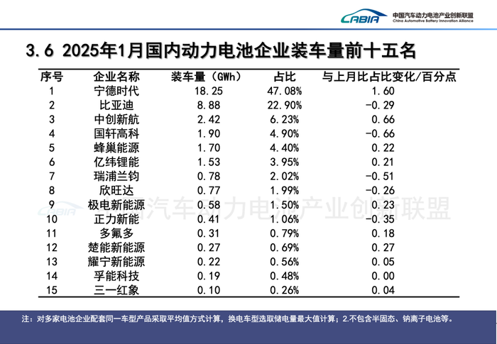 比亚迪(002594.SZ)紧随其后,1月实现装车量8.88 GWh,市占率为22.9%。宁德时代与比亚迪的市占率差距为24.18个百分点,较去年全年增加3.84个百分点。