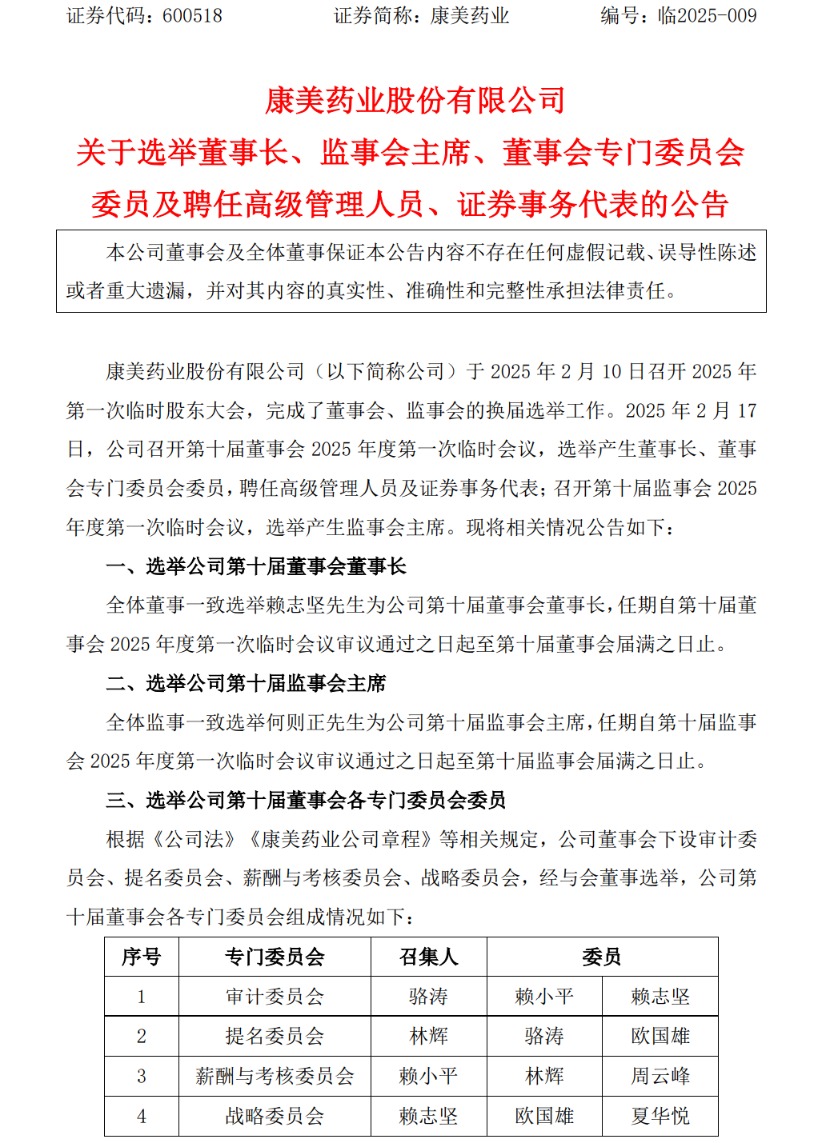 2月17日晚间,成功“摘帽”并实现盈利的康美药业宣布,董事会、监事会的换届选举及高级管理人员聘任工作完成。