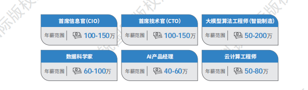 根据报告,以大模型为代表的生成式人工智能技术飞速发展,大模型研发人才供不应求,尤其是基础算法研究与核心技术开发人才需求攀升,薪资也水涨船高,大模型算法工程师(智能制造)年薪可达50万-200万元。随着算力基础设施的全面铺开,互联网巨头、国央企及各地政府积极筹建区域智算中心,对高水平算力人才的需求不断增加。同时,AI技术在垂直领域的应用深化,AI人才需求从通用技术向垂直行业拓展,首席信息官、云计算专家、AI产品专家等岗位炙手可热,其中CIO/CTO年薪可达100万-150万元。