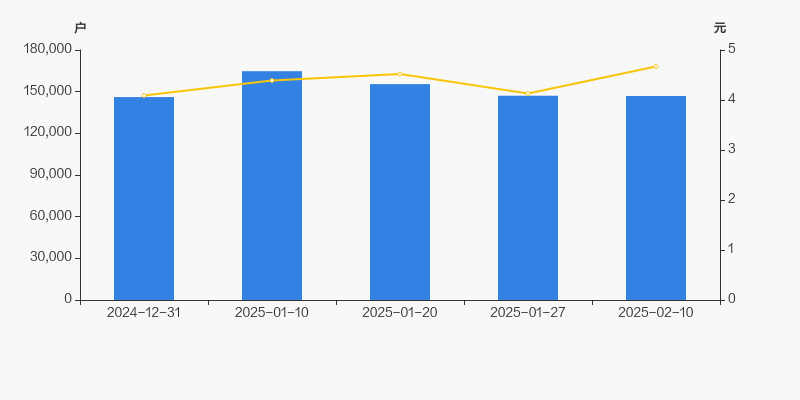 自2025年1月10日以来,公司股东户数连续3期下降,截至目前减幅为10.84%。2025年1月10日至2025年2月10日区间股价上涨6.38%。
