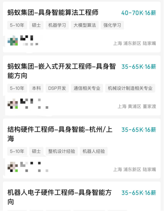 2月19日,有招聘平台信息显示,蚂蚁集团在招聘平台开放了多个具身智能方向的岗位,具体包括算法工程师、人形机器人硬件结构、仿真系统开发工程师、人形机器人运动控制等。薪资栏目显示为35k—70k不等。