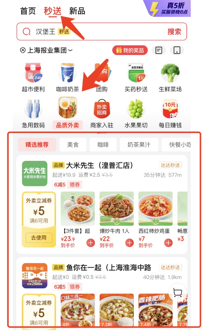 蓝鲸记者查询发现,目前京东外卖尚未上线独立app,而是以“品质外卖”的名称整合至京东app“秒送”频道中,与咖啡奶茶、生鲜菜场、团购等栏目并列呈现。