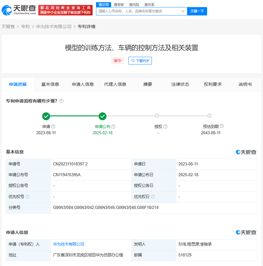 华为模型训练和车辆控制专利公布 可应用于AI领域