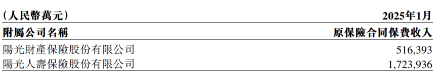 同日,阳光保险发布1月保费公告。旗下子公司阳光人寿保险原保险合同保费收入为172.39亿元,较上年同期下降9亿元,同比下降4.96%。