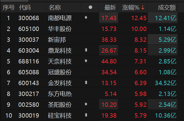 上证报中国证券网讯 2月21日,固态电池概念股震荡走高,截至9时53分,华丰股份涨停,南都电源涨超12%,新宙邦、鼎龙科技涨超8%,天奈科技、冠盛股份等跟涨。