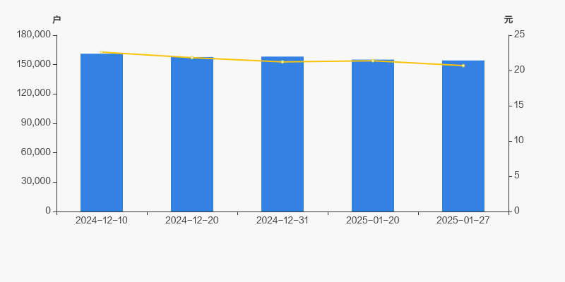 截至2025年1月27日,公司最新总股本为18.02亿股,其中流通股本为17.24亿股。户均持有流通股数量由上期的1.11万股上升至1.12万股,户均流通市值23.13万元。
