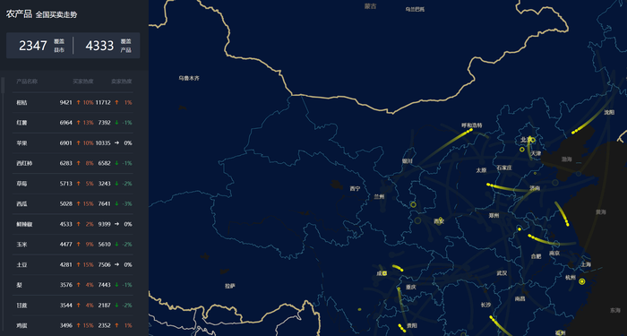 一亩田平台展示的全国农产品买卖走势/图片来源:一亩田官方网站