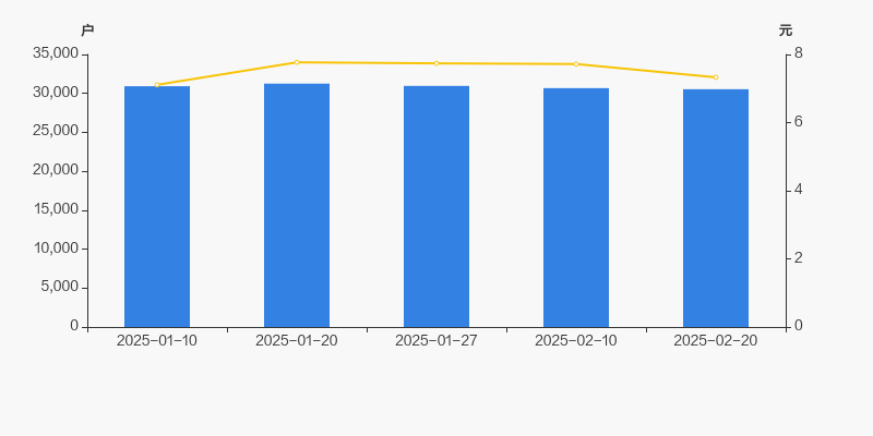 截至2025年2月20日,公司最新流通股本为3.7亿股。户均持有流通股数量由上期的1.2万股上升至1.21万股,户均流通市值8.87万元。