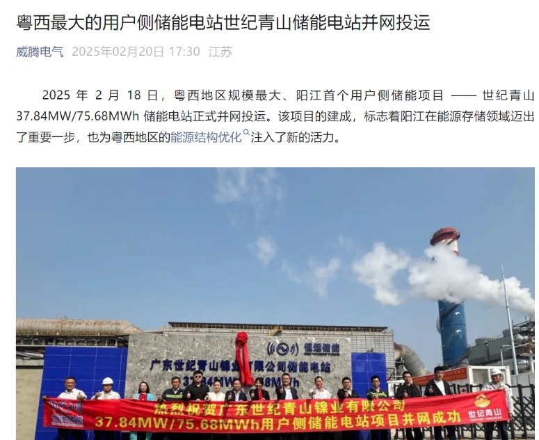 粤西最大的用户侧储能电站世纪青山储能电站并网投运