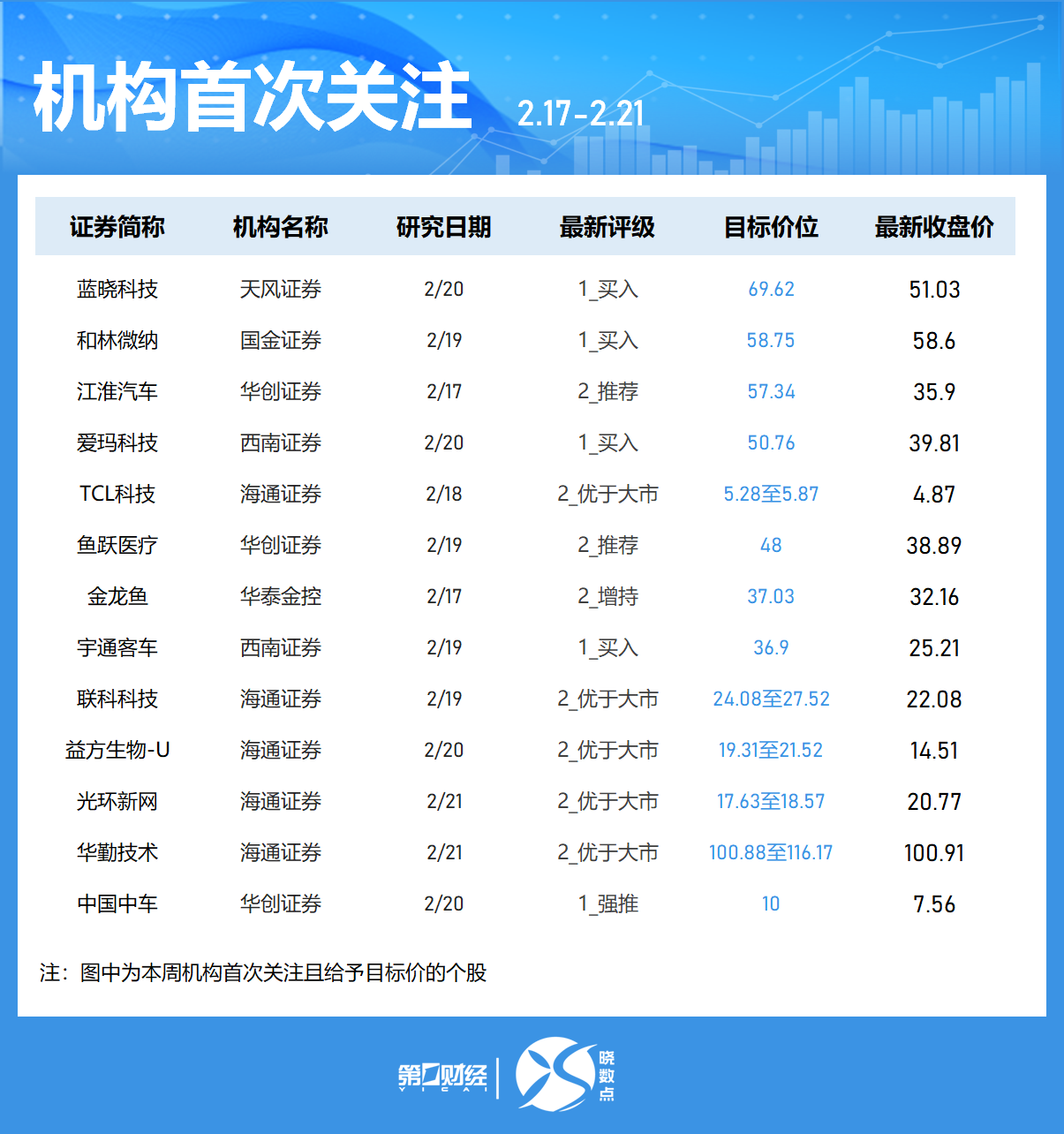 Wind数据显示,机构本周首次关注58只个股,其中13股被给予目标价。
