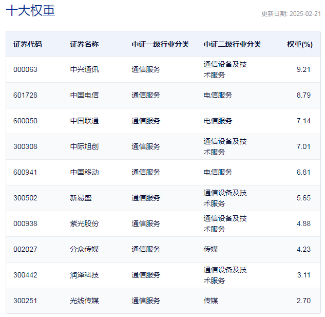 中证通信服务指数主要权重股