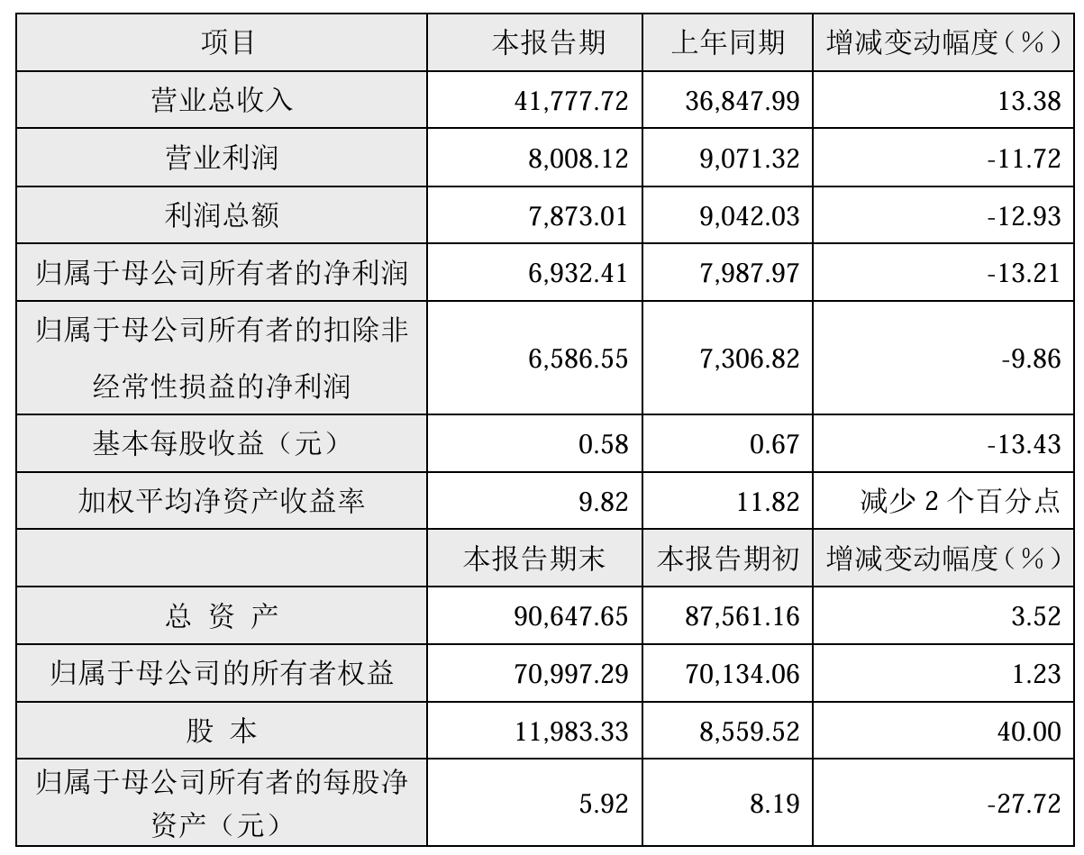此外,报告期末,公司总资产9.06亿元,较报告期初增长3.52%;归属于母公司的所有者权益7.10亿元,较报告期初增长1.23%;归属于母公司所有者的每股净资产5.92元,较报告期初下降27.72%。