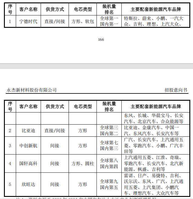招股意向书显示,永杰新材除了作为一级供应商向宁德时代、比亚迪等全球头部动力锂电池生产商供货外,还作为二级供应商通过与科达利、震裕科技、长盈精密等国内主要锂电池结构件制造商合作,增强在宁德时代等全球前十动力锂电池企业的供应链体系地位。