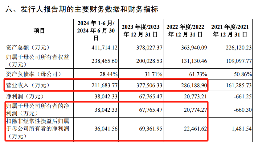 2022年至2024年,汉朔科技的营业收入分别为28.62亿元、37.75亿元、44.86亿元;归母净利润分别为2.08亿元、6.78亿元、7.10亿元。