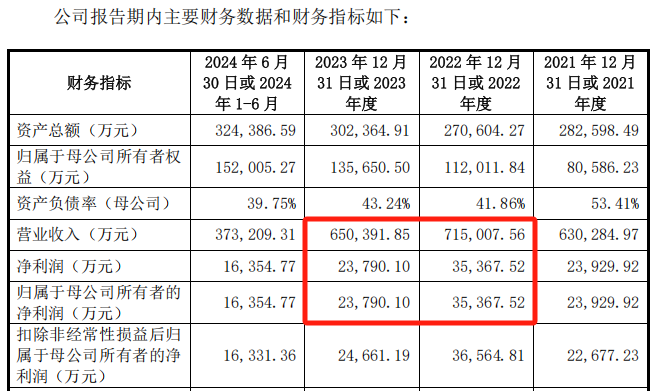 2022年至2024年,永杰新材的营业收入分别为71.50亿元、65.04亿元、81.11亿元;归母净利润分别为3.54亿元、2.38亿元、3.19亿元。