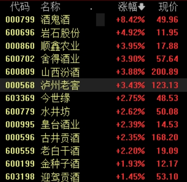 2月24日,白酒概念盘中大幅拉升,截至发稿,酒鬼酒涨超8%,岩石股份涨近5%,顺鑫农业、舍得酒业、山西汾酒等涨幅居前。