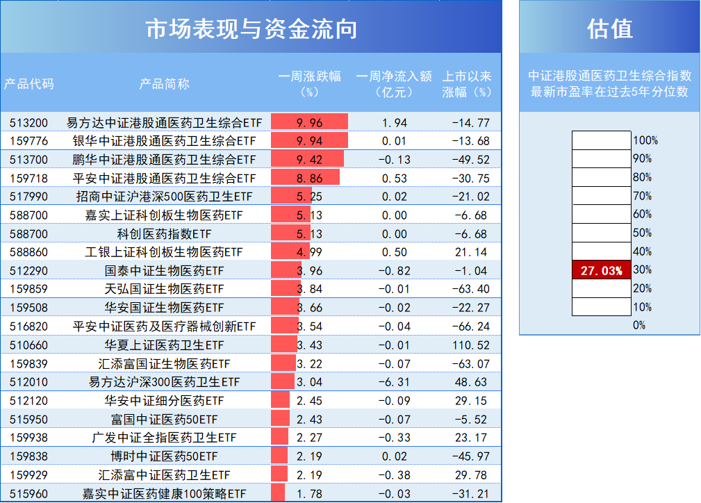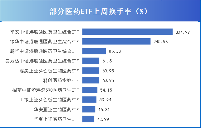 易方达中证港股通医药卫生综合ETF(513200)、平安中证港股通医药卫生综合ETF(159718)上周日均成交额分别达到3.03亿元和1.54亿元,较前一周增长162.49%和149.95%。平安中证港股通医药卫生综合ETF周换手率超过300%。