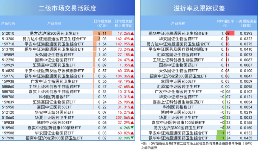 上周,港股通医药ETF表现更为活跃。多只港股通医药ETF成交额翻番。