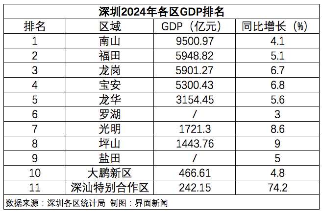 光明和坪山GDP增速亮眼,罗湖增速倒数第一