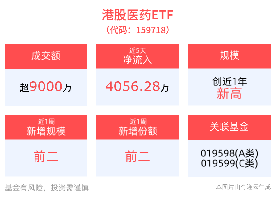 规模方面,港股医药ETF最新规模达2.64亿元,创近1年新高。医疗创新ETF最新规模达17.44亿元,创近1月新高。