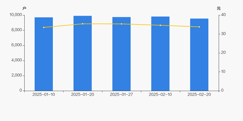 2025年1月10日至今,公司股东户数有所下降,区间跌幅为1.67%。2025年1月10日至2025年2月20日区间股价上涨0.90%。
