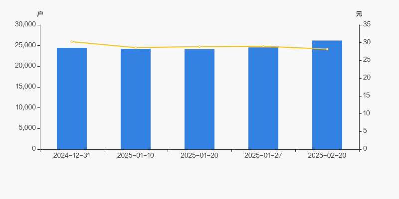 2024年12月31日至今,公司股东户数有所增长,区间涨幅为7.12%。2024年12月31日至2025年2月20日区间股价下降6.90%。