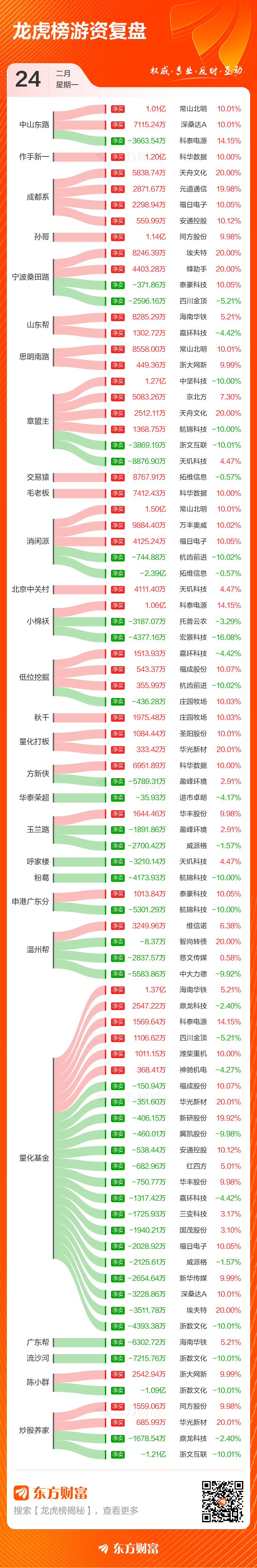 2月24日共有71只个股(含1只可转债)上榜龙虎榜,总上榜成交额214.56亿元。上榜个股中净买入额最高的是万丰奥威,金额为6.46亿元。