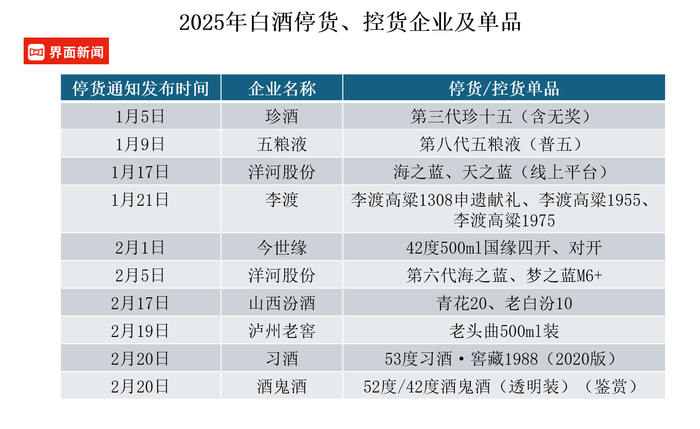 2025年酒企停货控货一览表/制图界面新闻